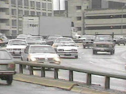 einen schnelleres Fahrzeug auf den breiten Seitenstreifen und der