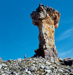 Das Wandern durch die zerklüfteten Landschafts- und Felsformationen, mit